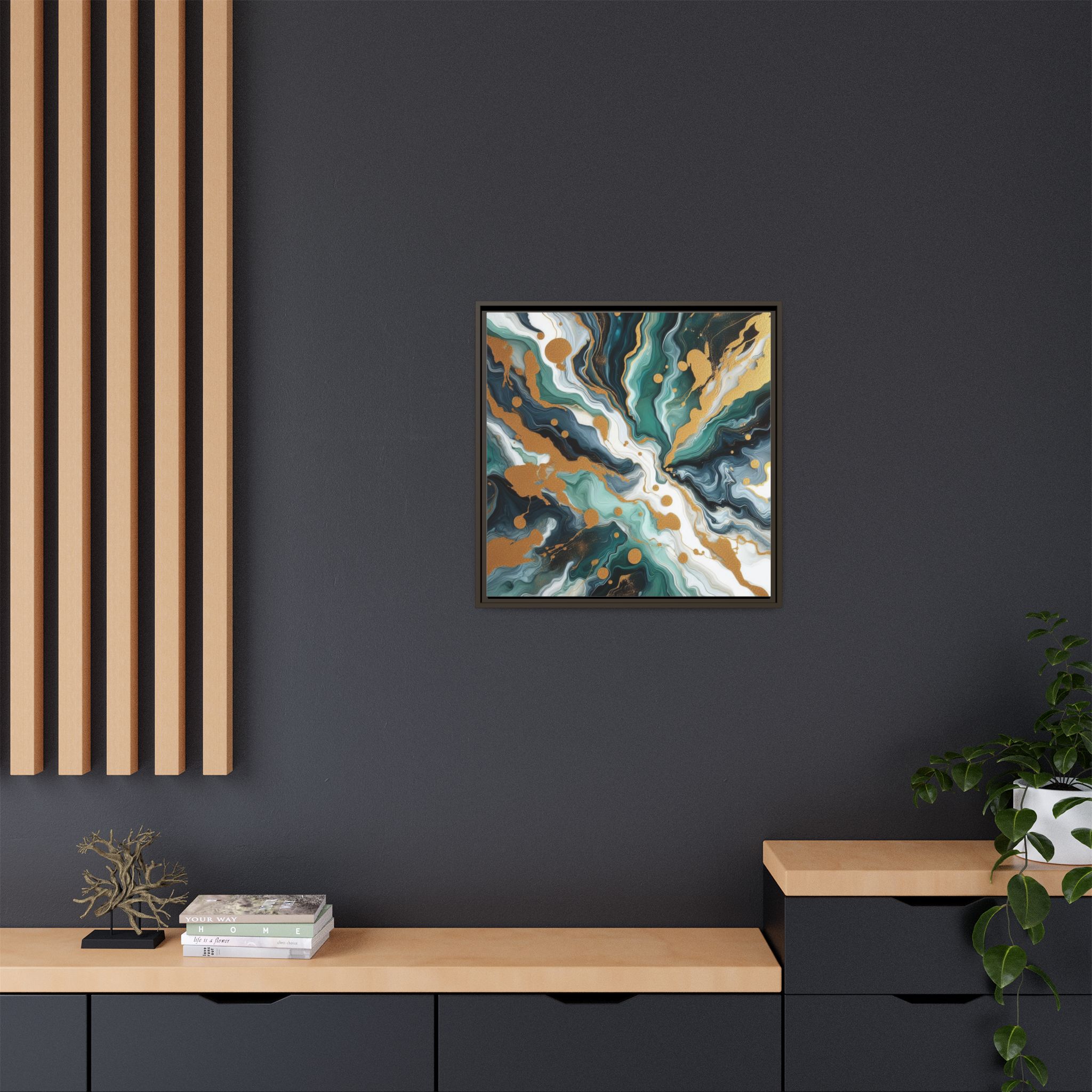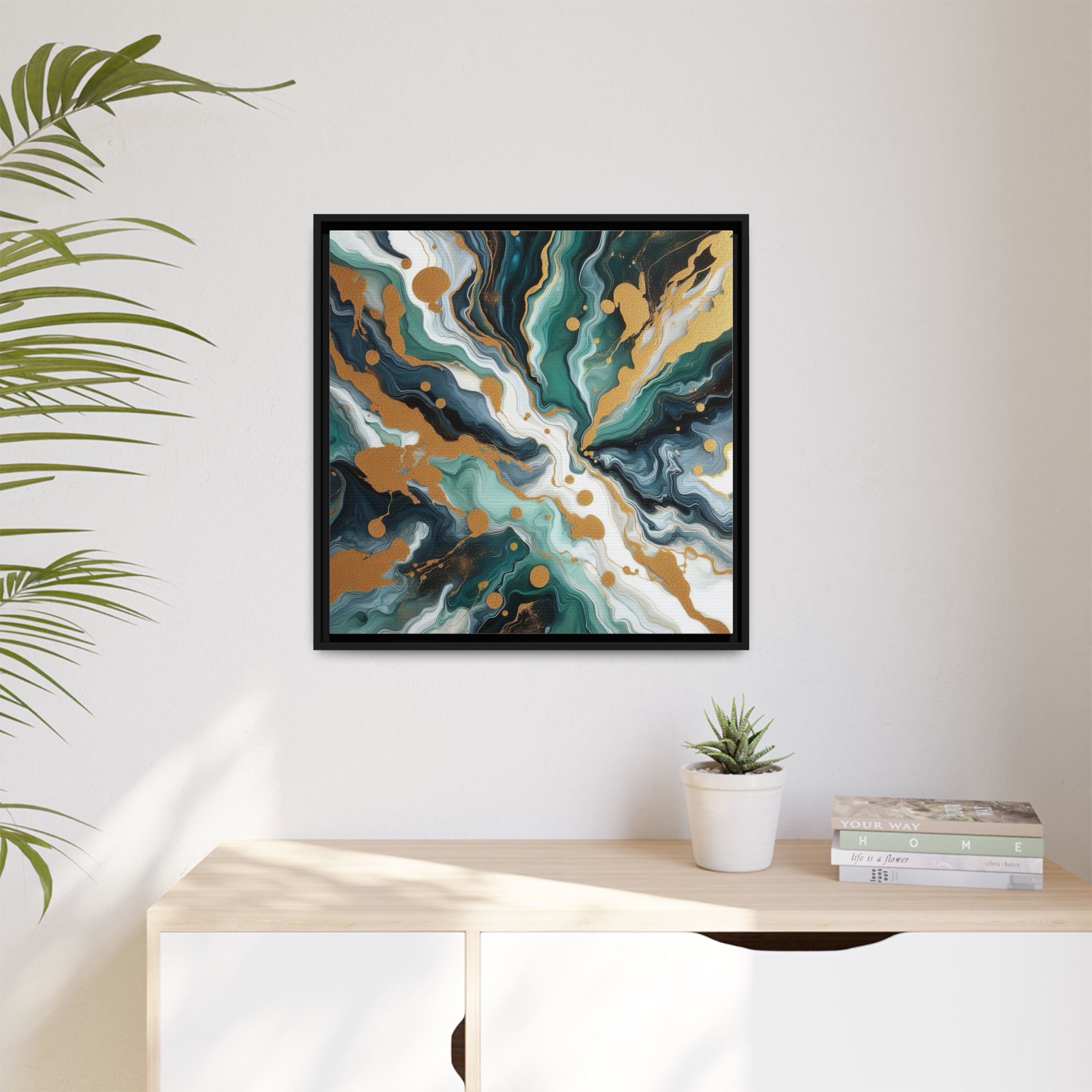 Elevate your space with this stunning Framed Canvas. Featuring a vibrant and dynamic abstract design that combines rich hues with playful splashes of gold, this piece instantly transforms any room into a sanctuary of creativity and inspiration. Perfect for those who appreciate modern art, this canvas adds a touch of elegance and sophistication to your home or office.