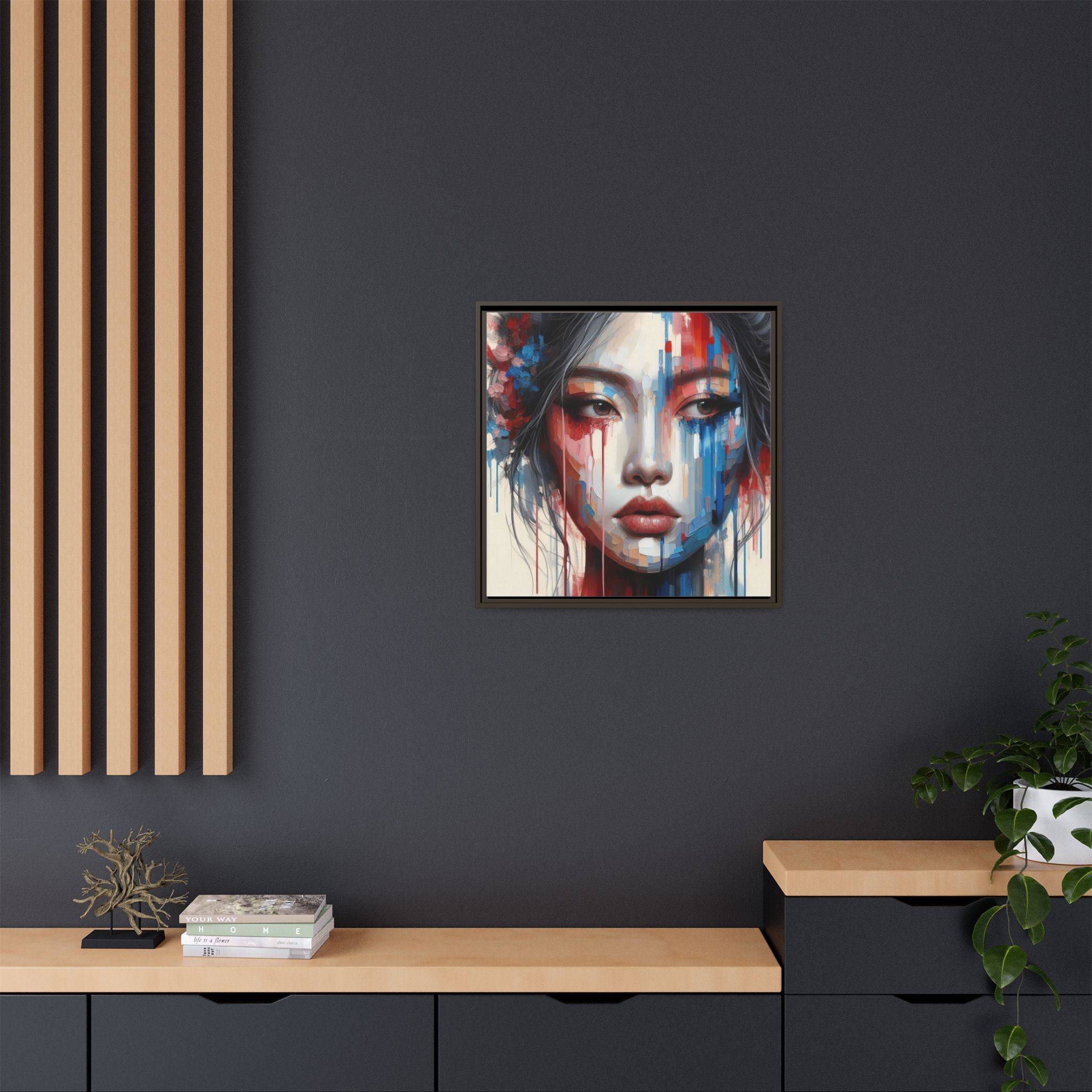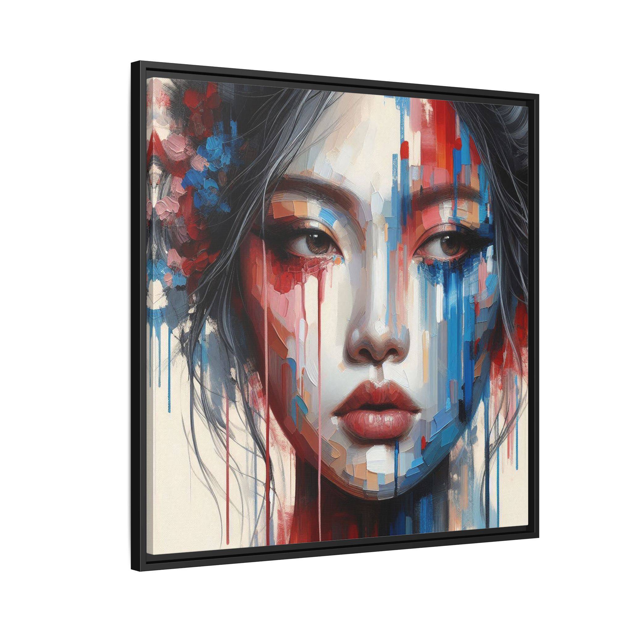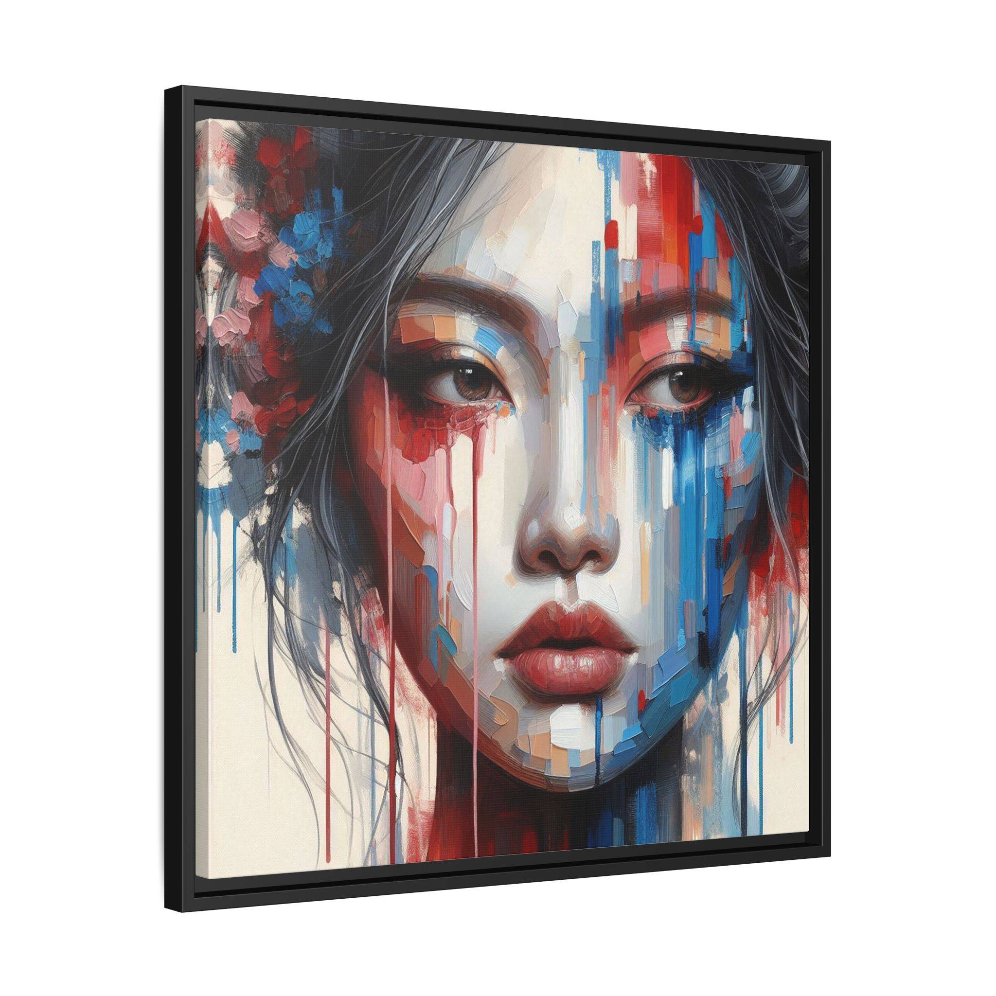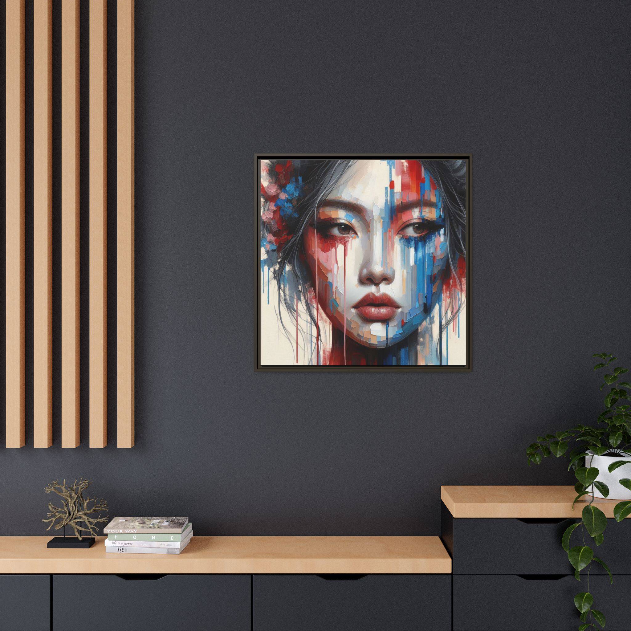 A framed matte canvas that brings bold, painterly emotion to your walls. Soft, muted skin tones and explosive streaks of red and blue create a modern portrait that holds the room’s attention without overpowering it. The fine-texture canvas with a subtle matte finish reduces glare and reveals nuanced brush-like details, while the slim pine frame adds structure and a contemporary gallery feel. Hang it in a living room, studio, or hallway to introduce depth and color that sparks conversation and quiet reflection.