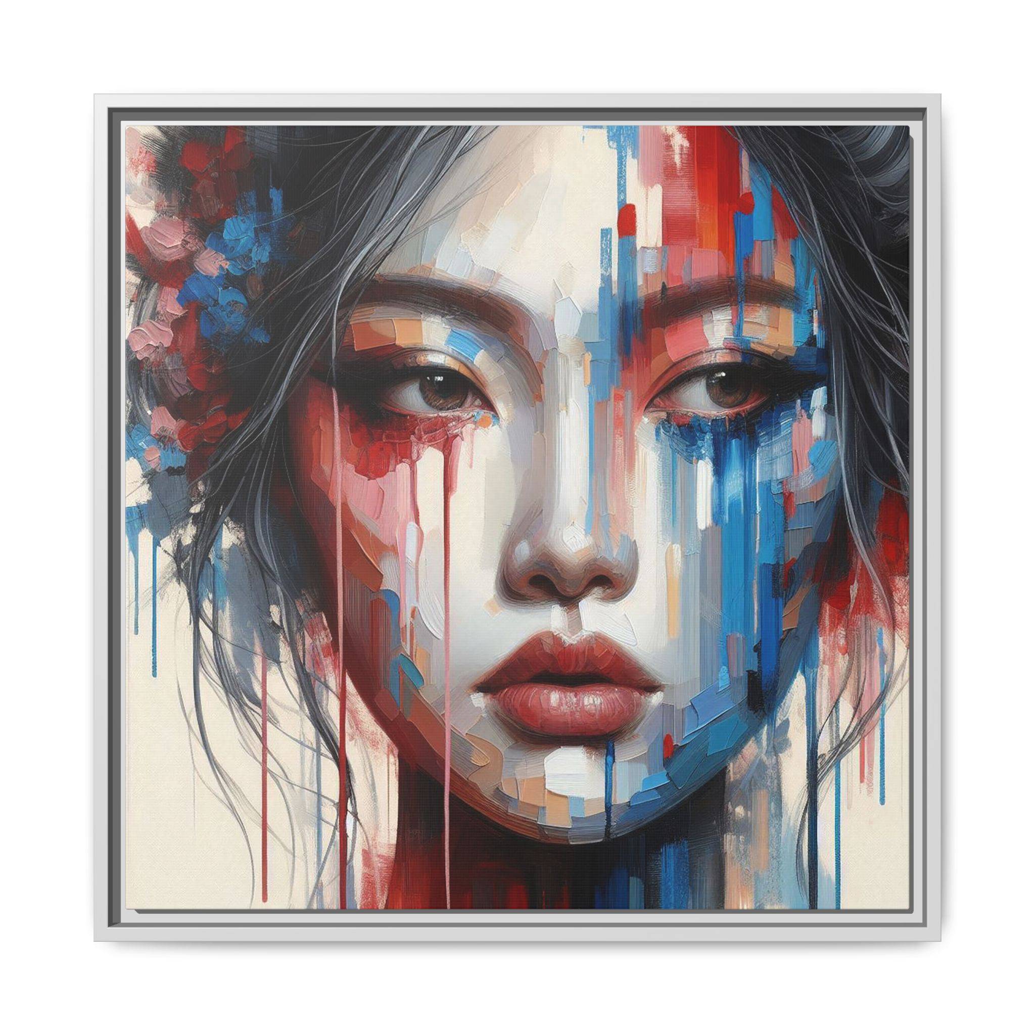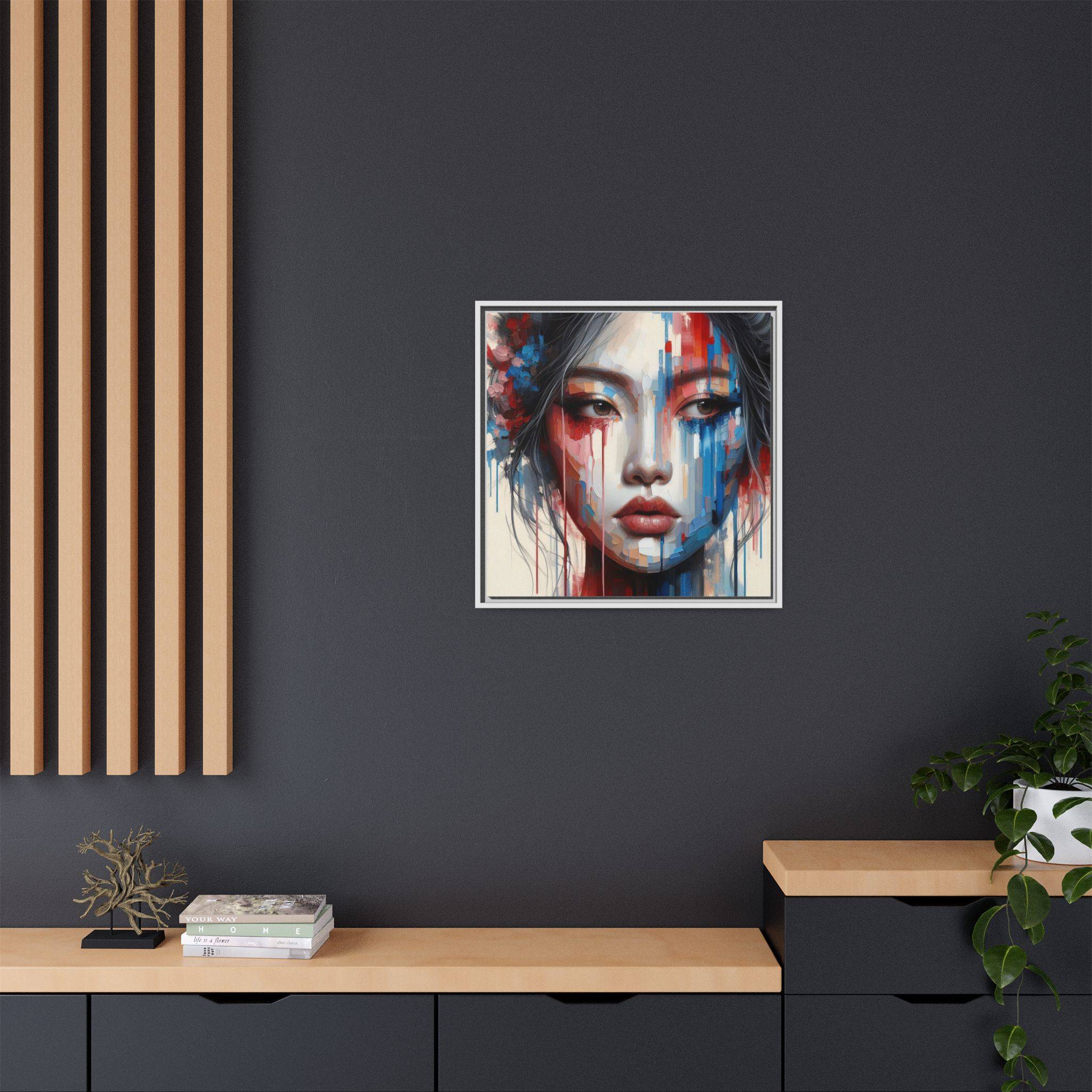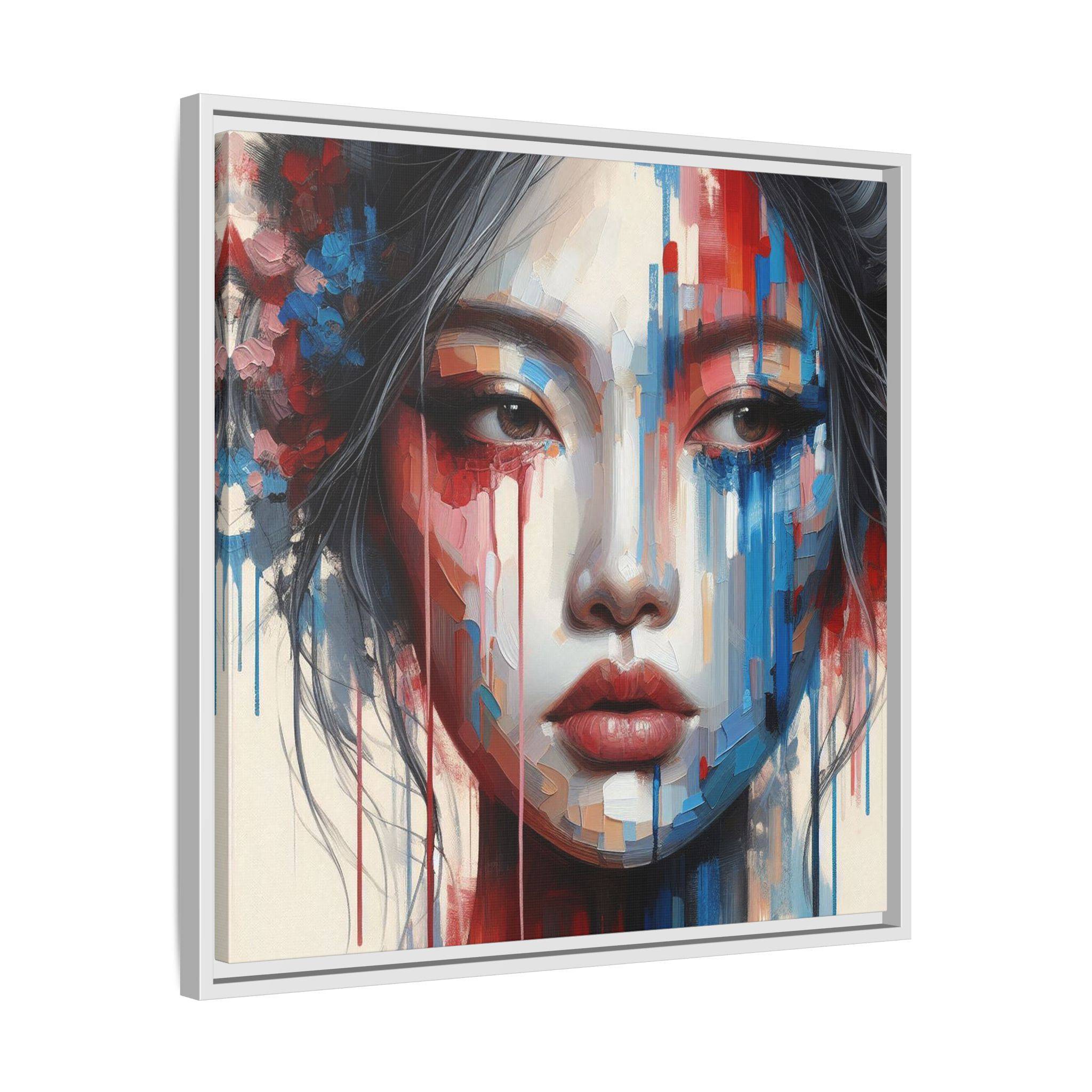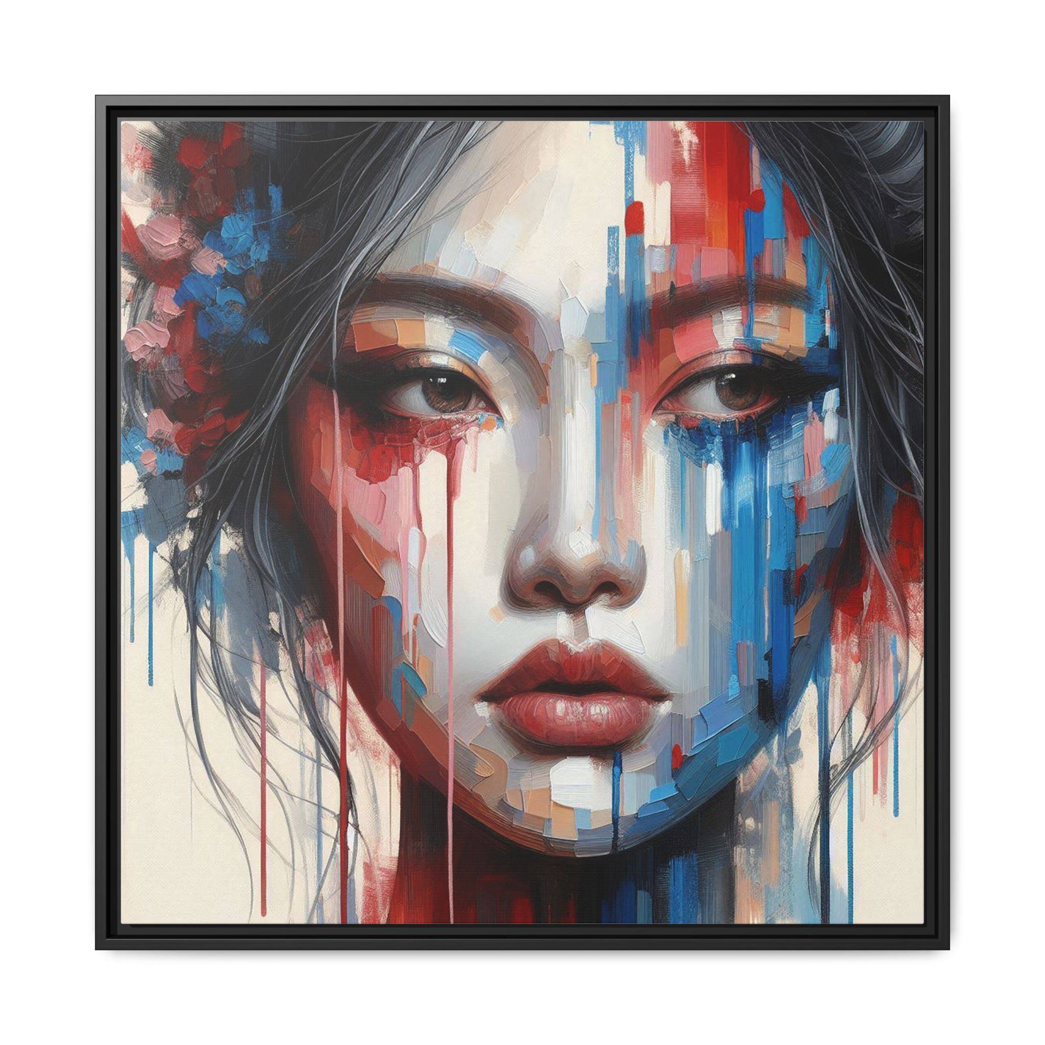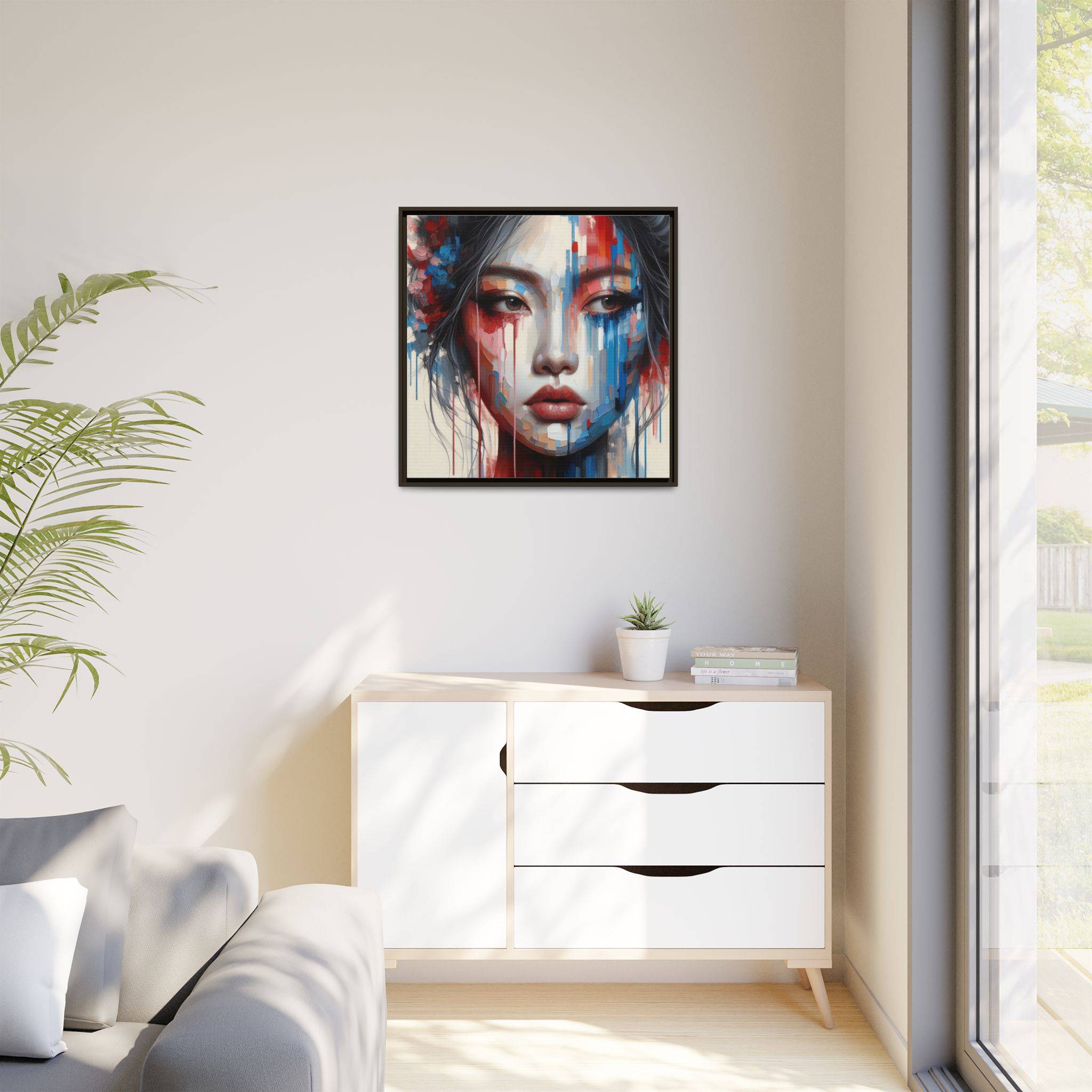 A framed matte canvas that brings bold, painterly emotion to your walls. Soft, muted skin tones and explosive streaks of red and blue create a modern portrait that holds the room’s attention without overpowering it. The fine-texture canvas with a subtle matte finish reduces glare and reveals nuanced brush-like details, while the slim pine frame adds structure and a contemporary gallery feel. Hang it in a living room, studio, or hallway to introduce depth and color that sparks conversation and quiet reflection.