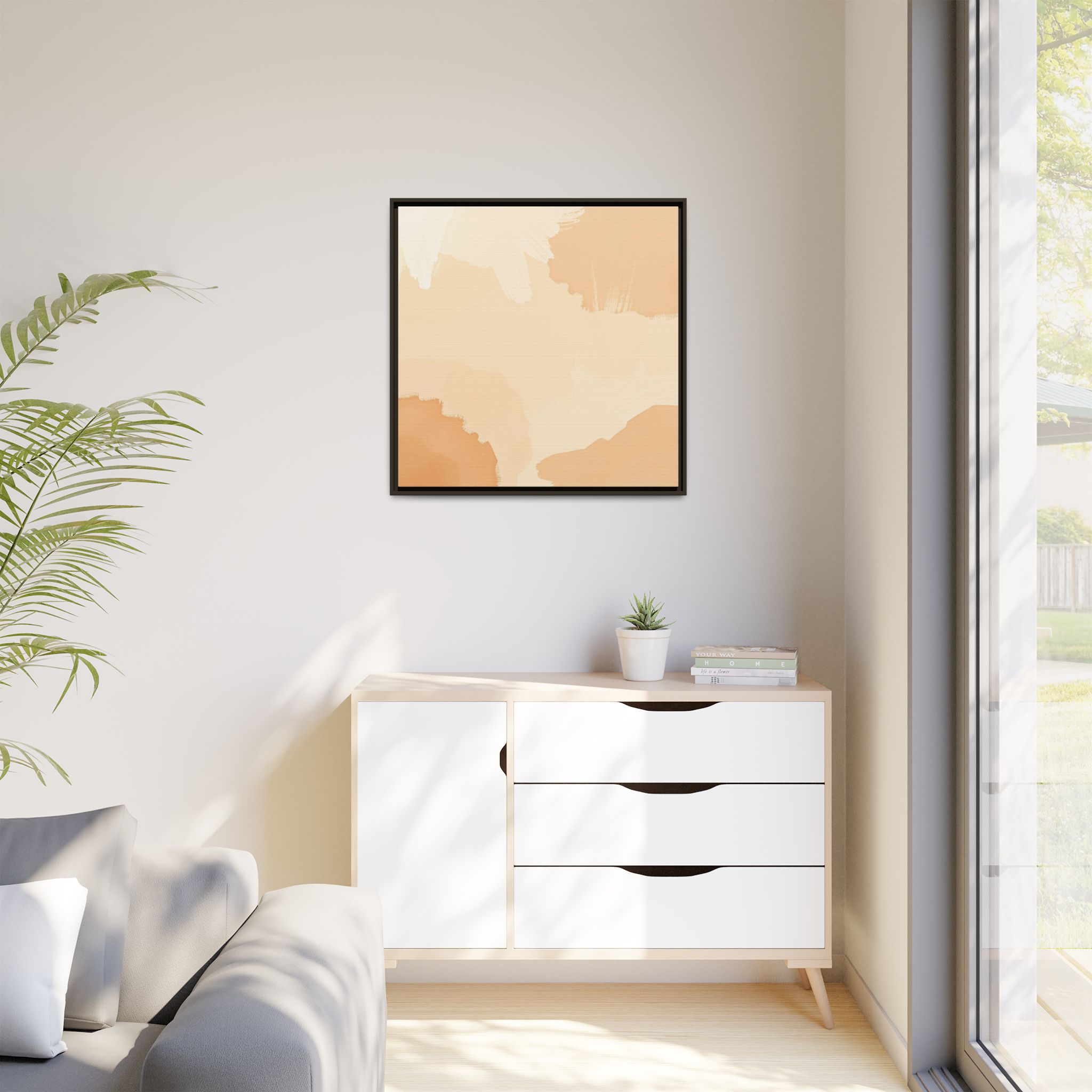 Bask in the soft, inviting warmth of “Morning Glow.” This luminous artwork features beautifully layered brushstrokes in gentle shades of peach, cream, and warm beige. The composition creates a wonderful sense of depth and light, reminiscent of a peaceful sunrise. “Morning Glow” is perfect for adding a soft, comforting, and positive energy to a nursery, bedroom, or any space that needs a touch of gentle warmth.