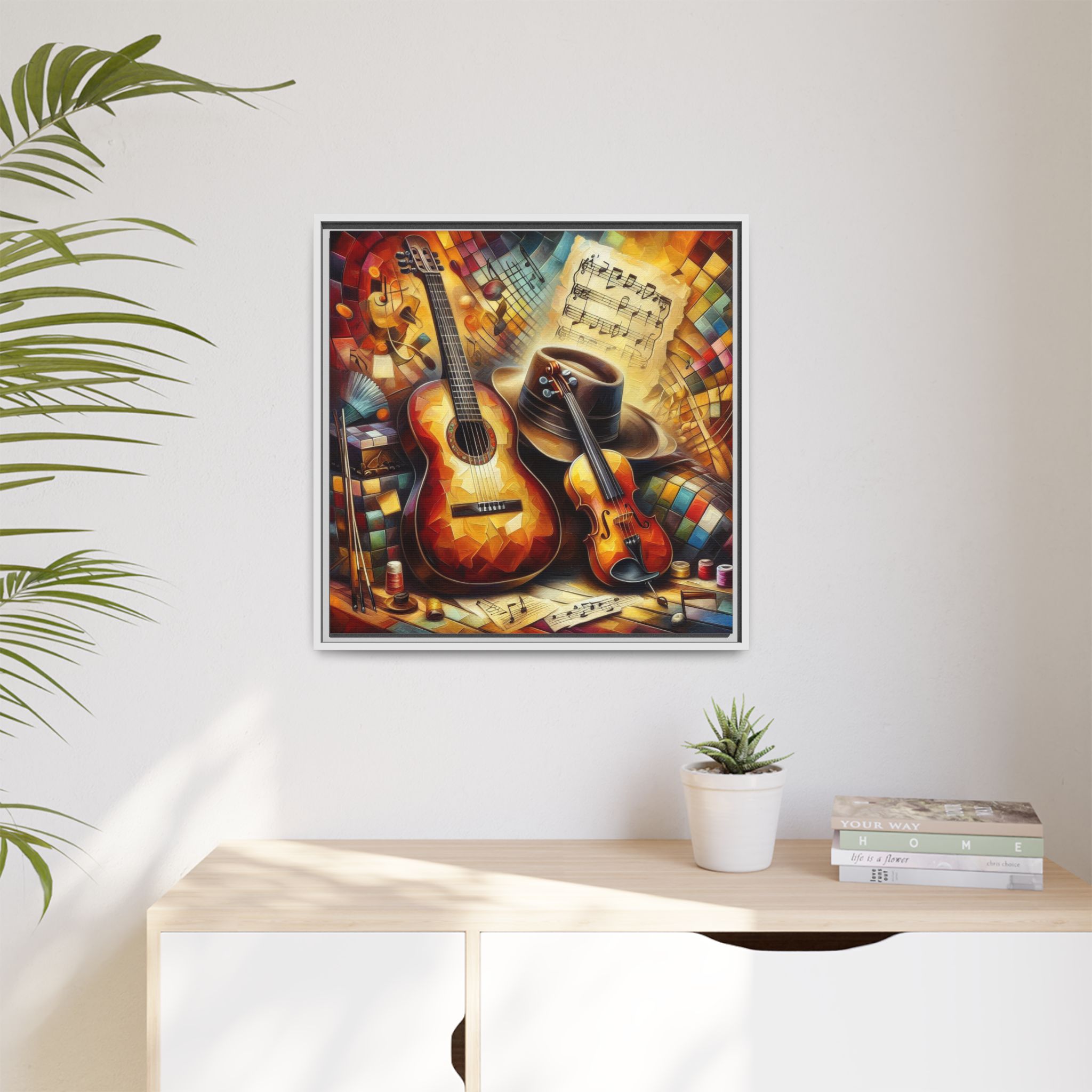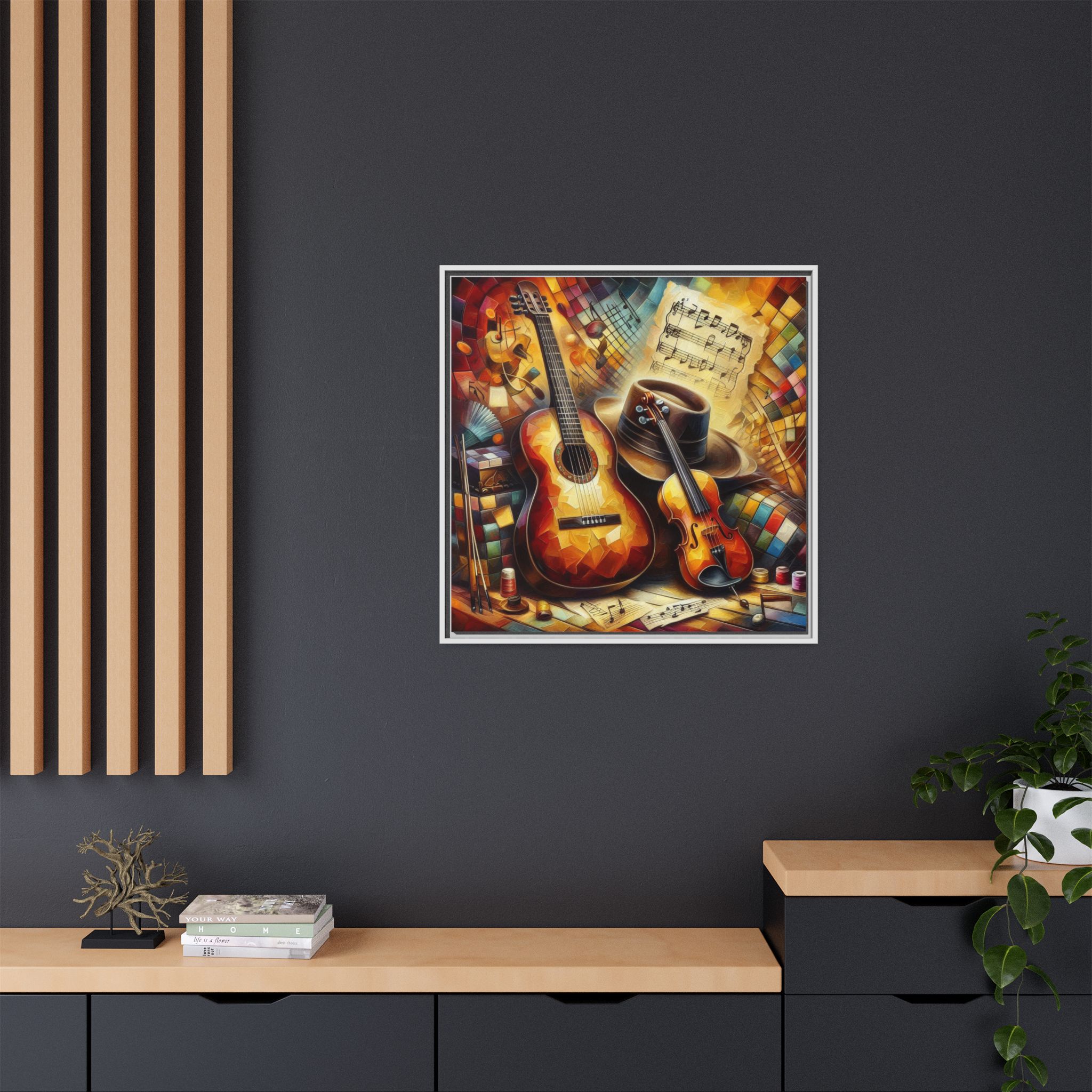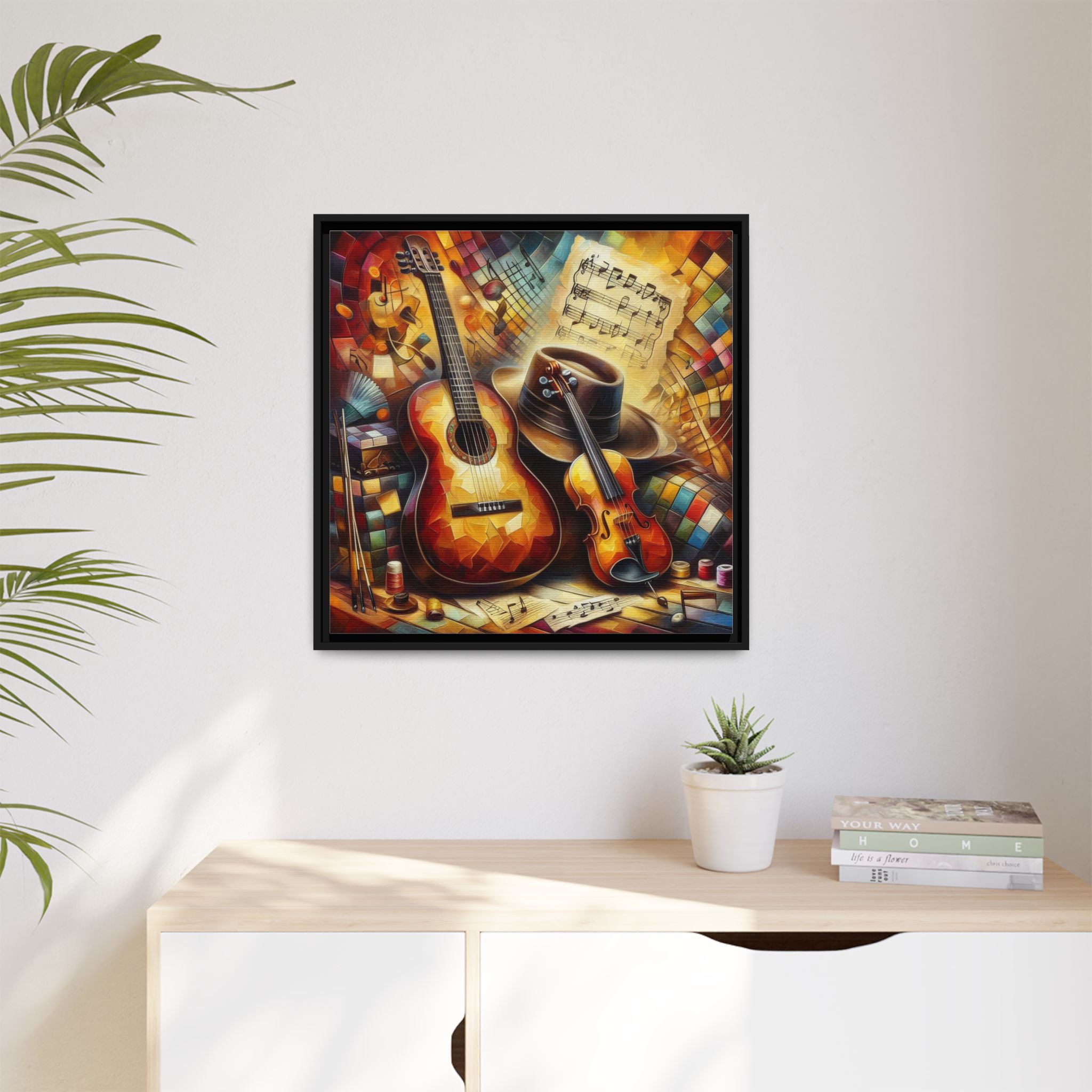 Transform your space with this vibrant Framed Canvas Art, perfect for adding a touch of creativity and warmth to any room. This eye-catching piece features a colorful depiction of musical instruments, ideal for music lovers and artistic souls alike. The vibrant colors and intricate details evoke a joyful atmosphere, making it an excellent addition to your home, studio, or office. Celebrate your passion for music or gift it to a fellow enthusiast during birthdays, housewarmings, or just because. This canvas art can elevate your ambiance during festive seasons like Christmas or during gatherings with friends, providing a lively focal point in any setting.