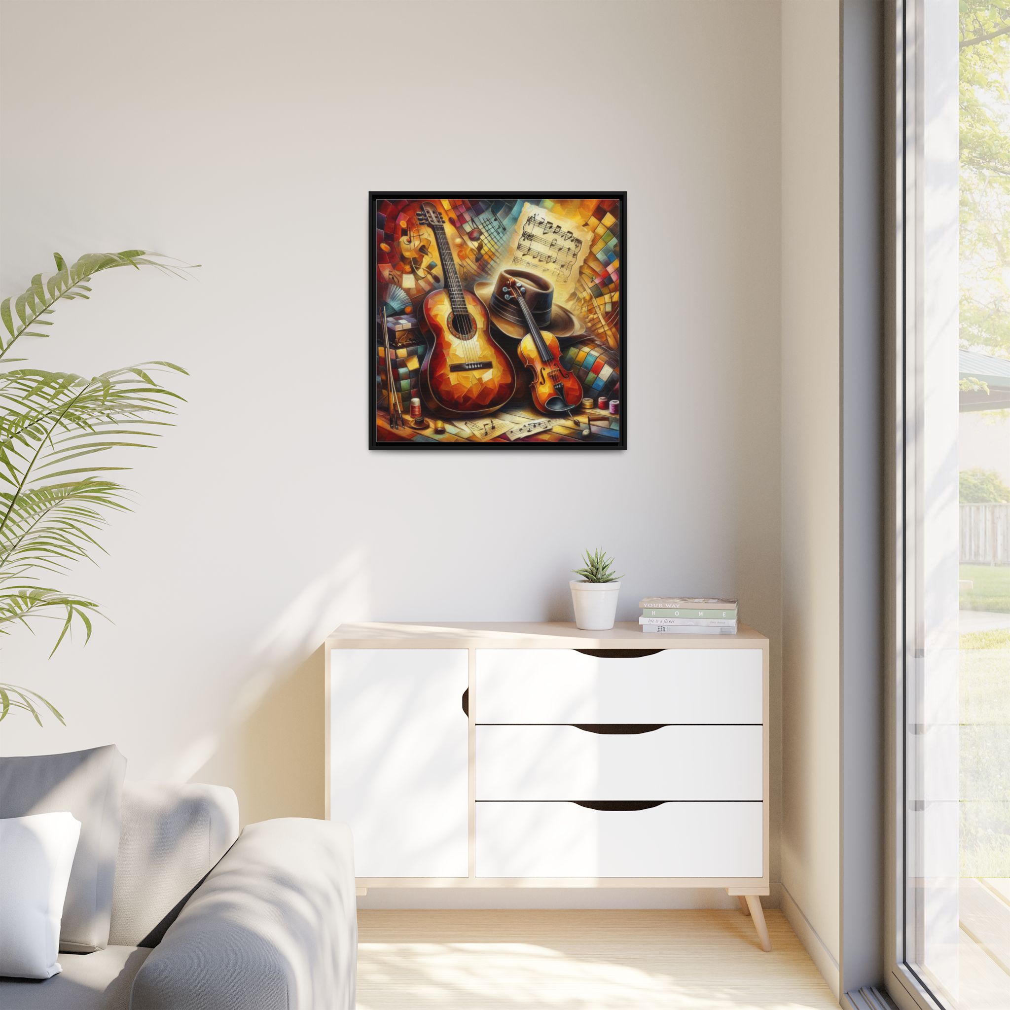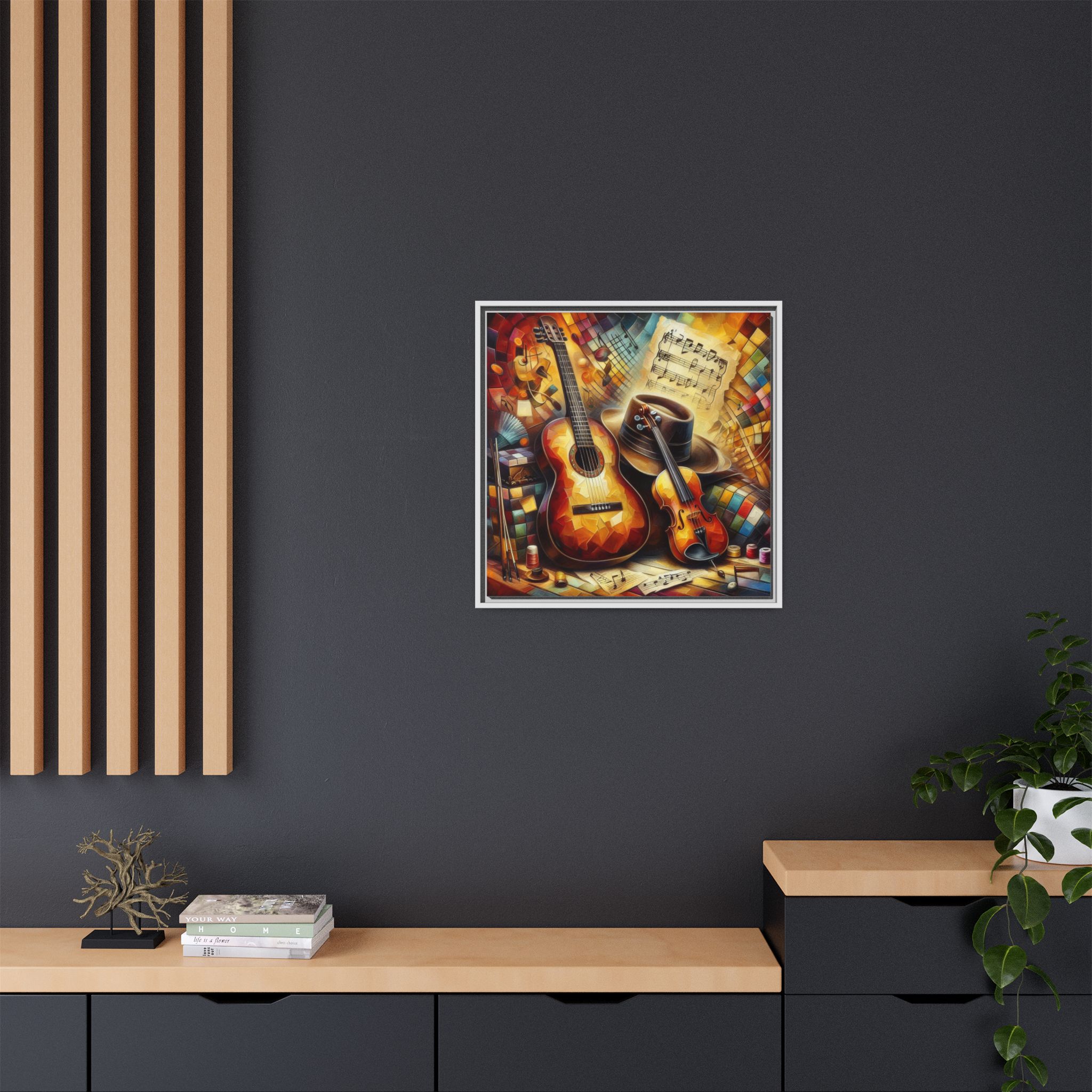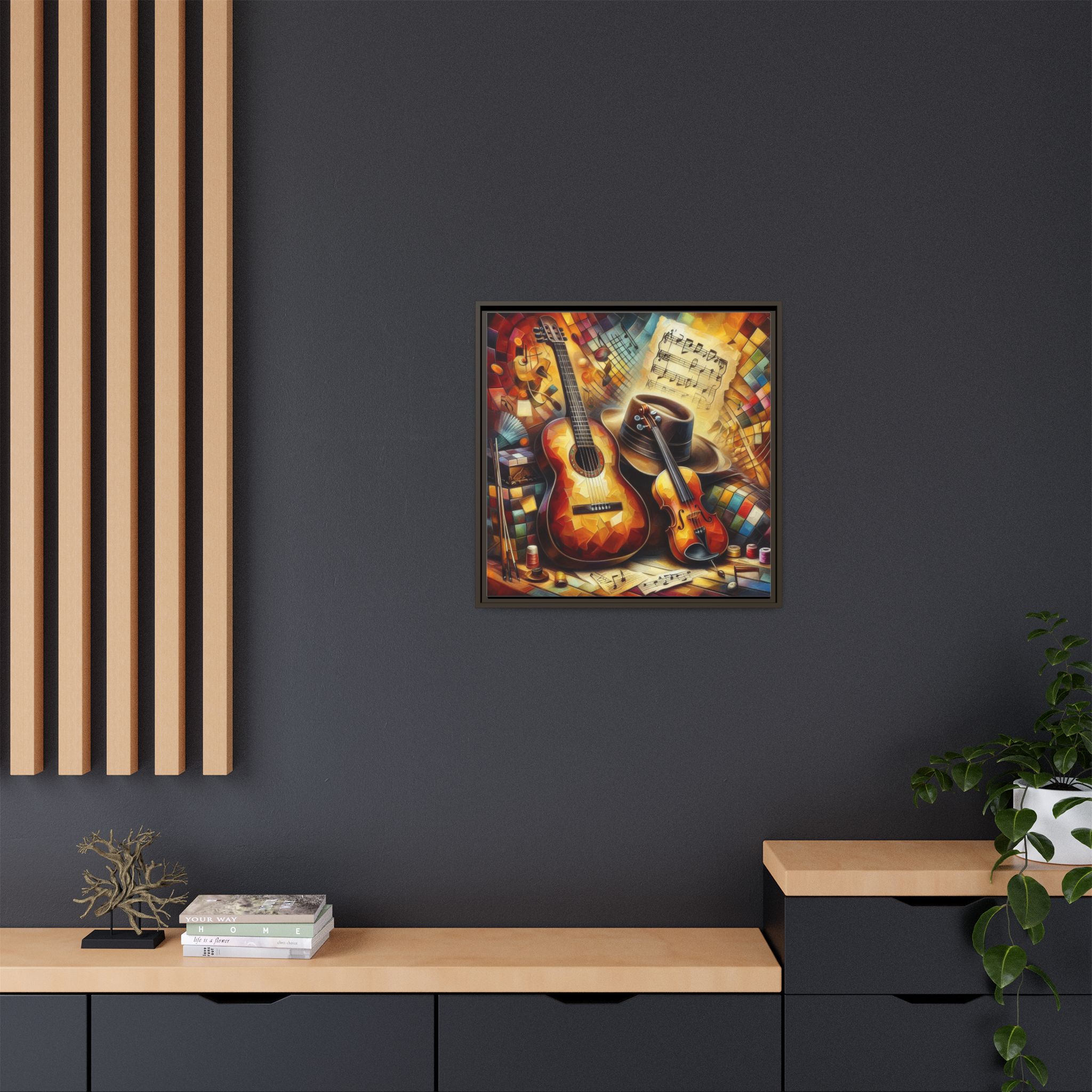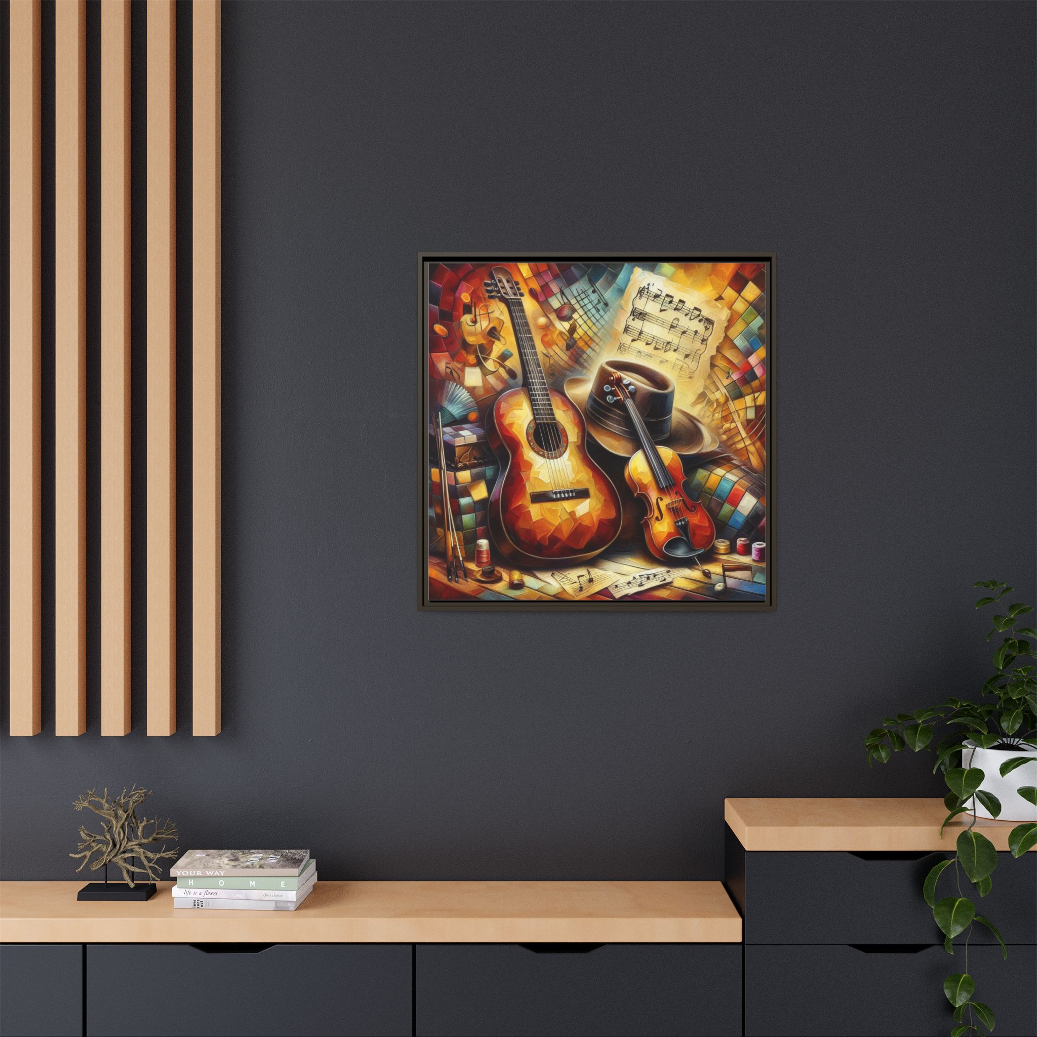 Transform your space with this vibrant Framed Canvas Art, perfect for adding a touch of creativity and warmth to any room. This eye-catching piece features a colorful depiction of musical instruments, ideal for music lovers and artistic souls alike. The vibrant colors and intricate details evoke a joyful atmosphere, making it an excellent addition to your home, studio, or office. Celebrate your passion for music or gift it to a fellow enthusiast during birthdays, housewarmings, or just because. This canvas art can elevate your ambiance during festive seasons like Christmas or during gatherings with friends, providing a lively focal point in any setting.