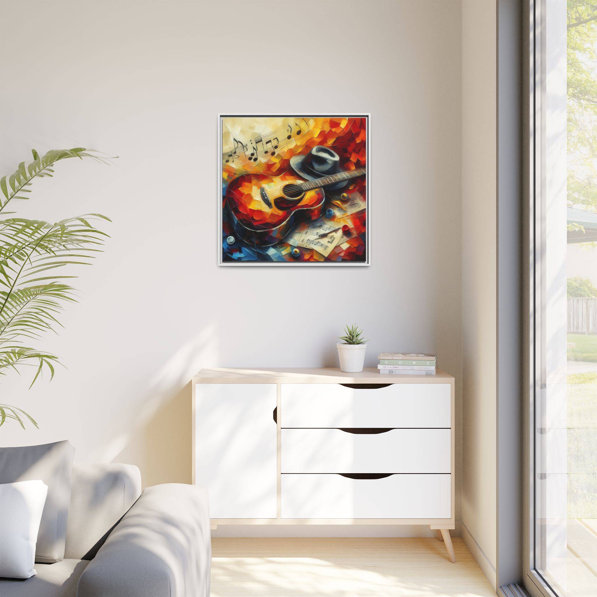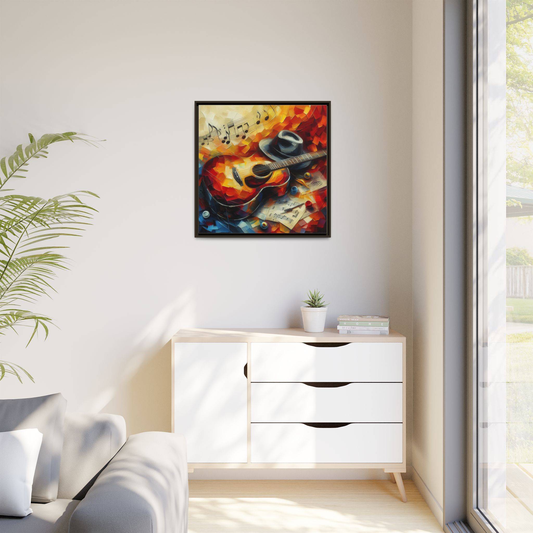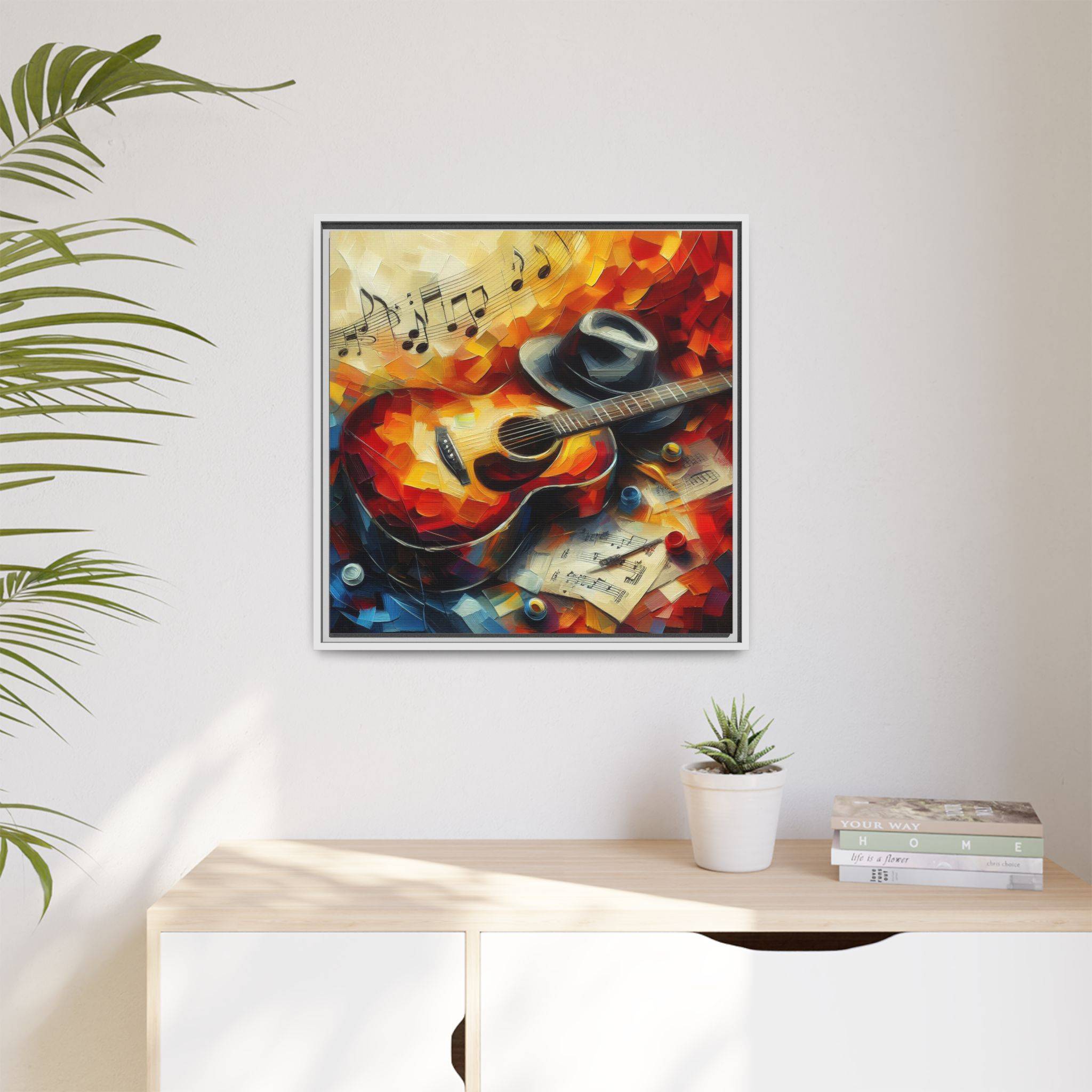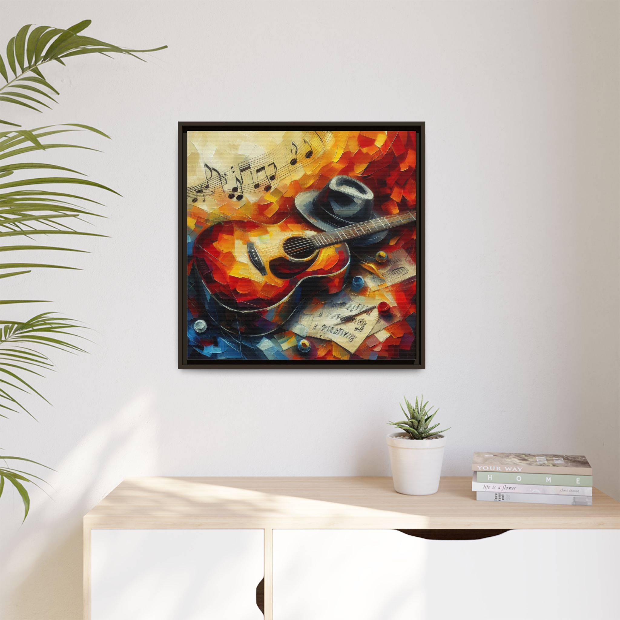 Transform your space with this stunning Matte Canvas Framed artwork. Featuring a vibrant and expressive guitar scene, it evokes a warm and inviting atmosphere perfect for music lovers and art enthusiasts alike. This piece is ideal for accentuating your living room, music studio, or office, bringing a splash of color and creativity into your environment. Whether for a birthday, graduation, or housewarming gift, this artwork is a perfect choice for anyone who appreciates the harmony of art and music. Additionally, it’s a great way to celebrate occasions like the holidays or simply add an elegant touch to your decor.