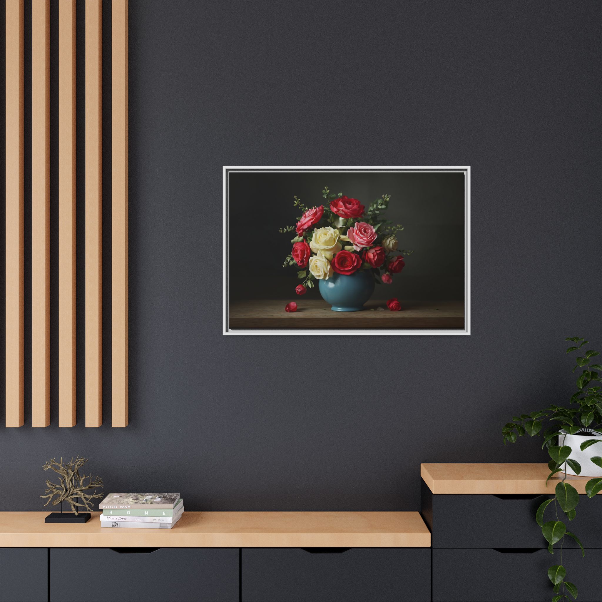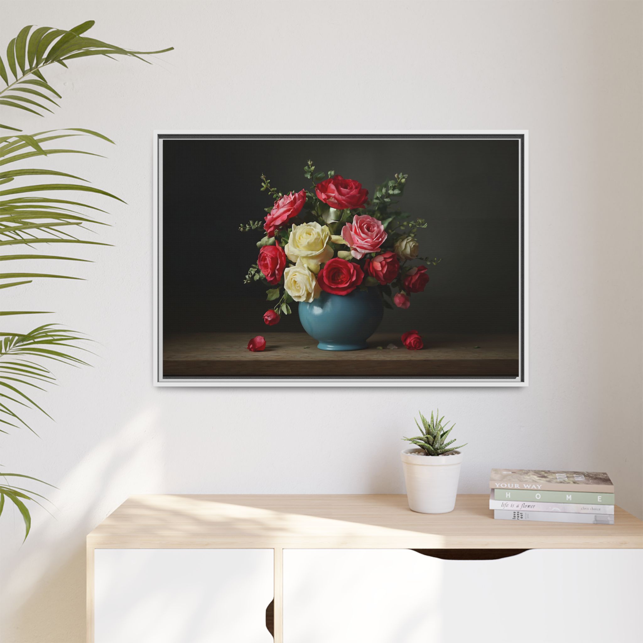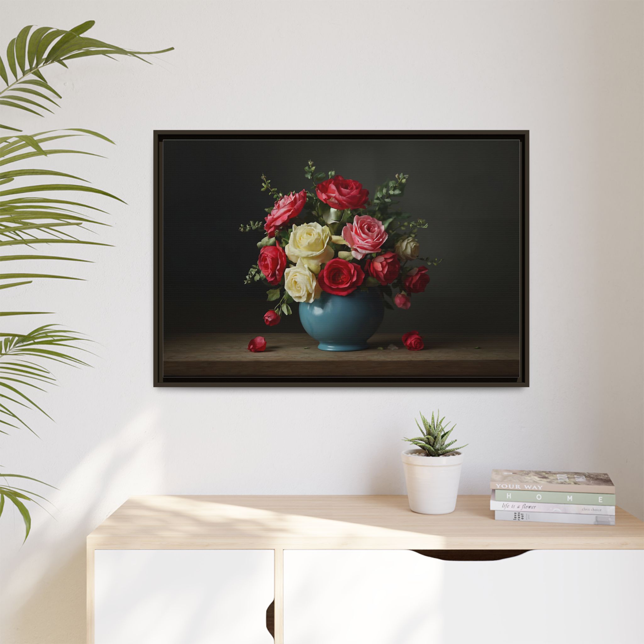 Elevate your home with our stunning Framed Canvas, a perfect blend of art and elegance. This vibrant canvas features a beautifully arranged bouquet of roses in a charming vase, perfect for adding a touch of romance and warmth to any space. Whether adorning your living room, bedroom, or office, this piece brings a soothing yet lively atmosphere. Ideal for art lovers, flower enthusiasts, or anyone looking to brighten their decor. Perfect for occasions like anniversaries, weddings, or simply as a thoughtful gift for loved ones. Celebrate beauty and nature in your home with this delightful decor item!