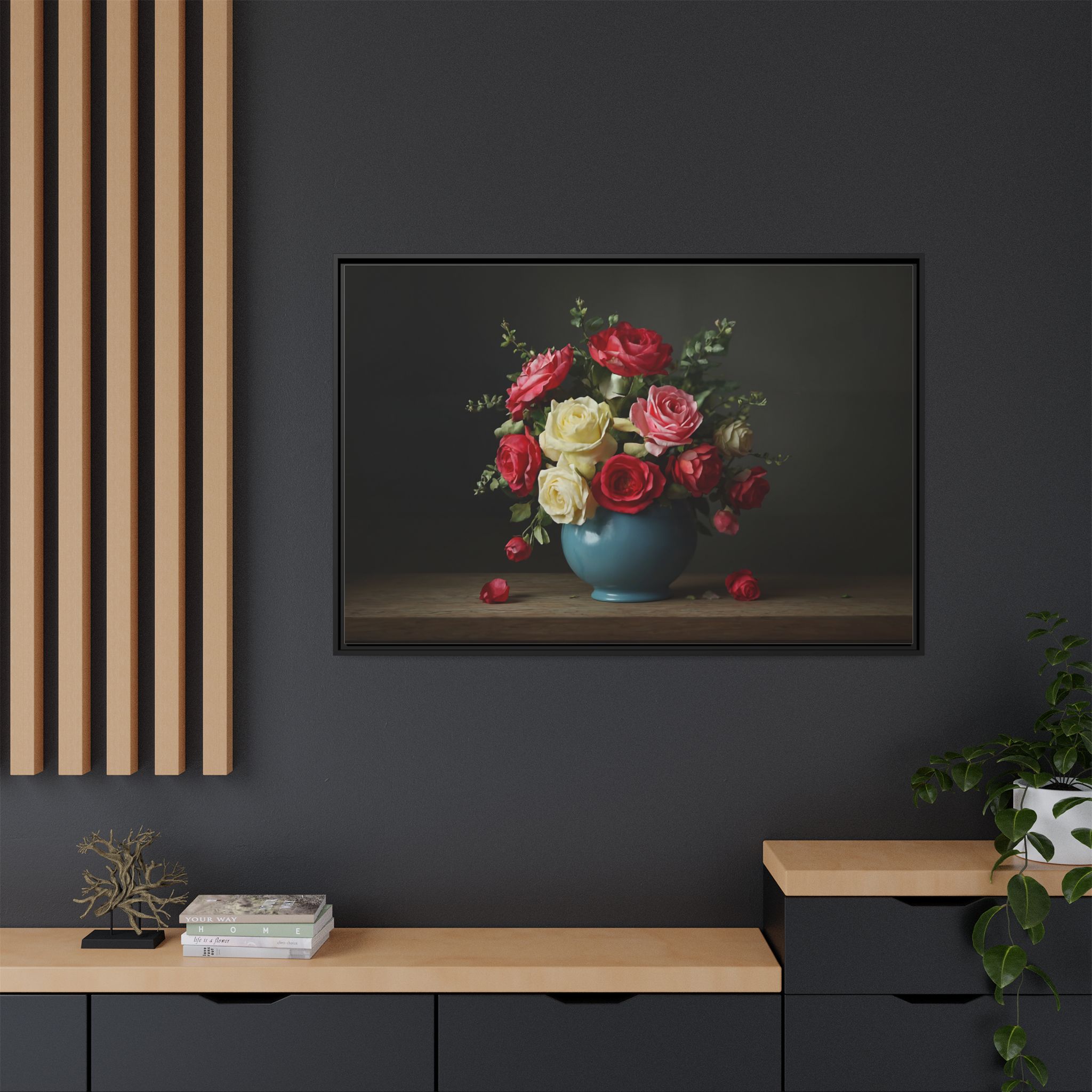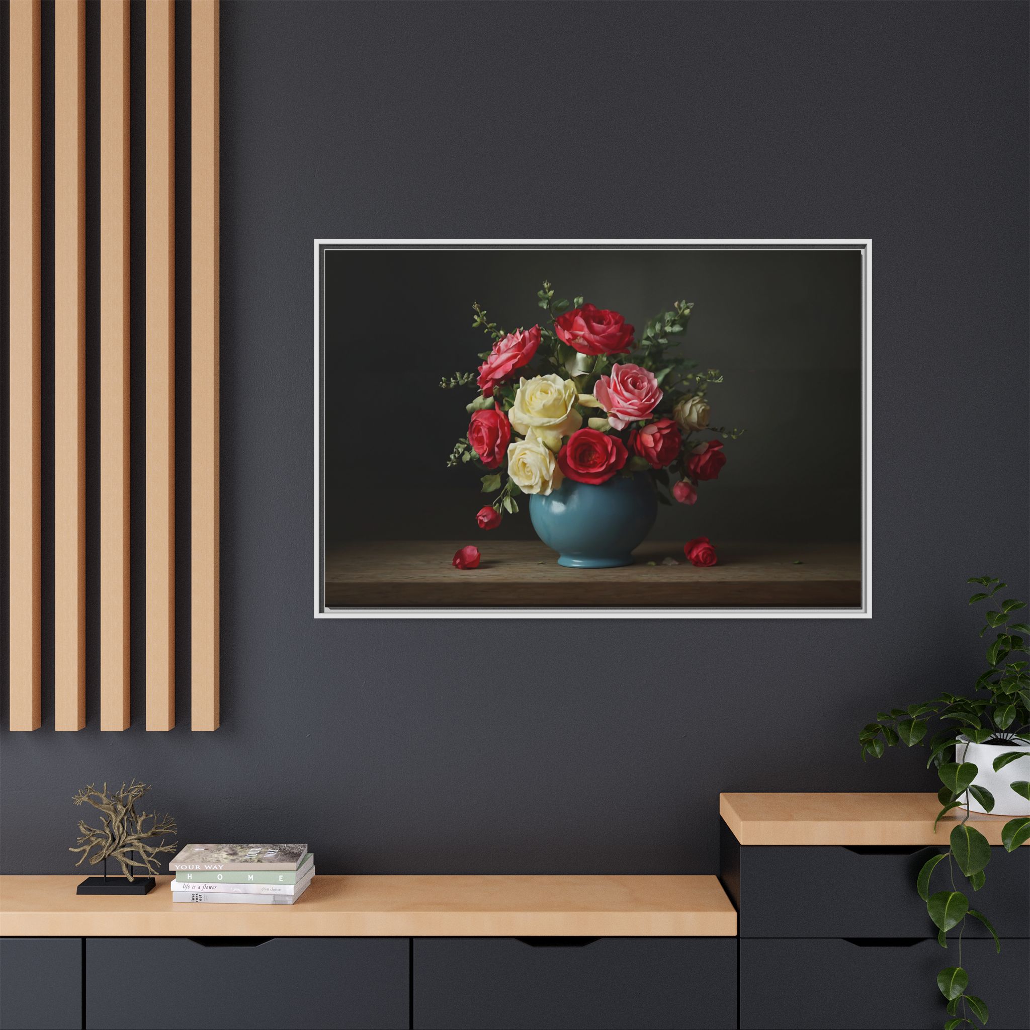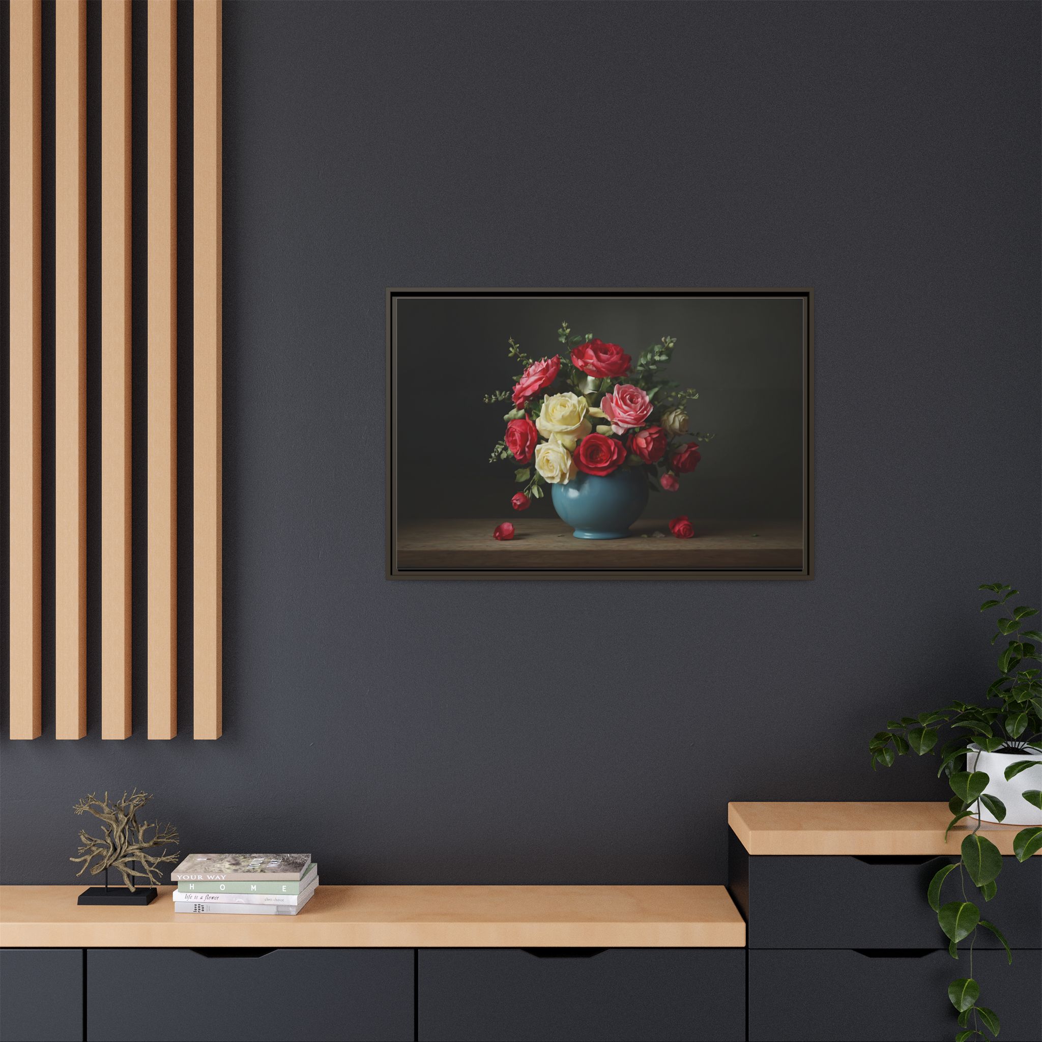 Elevate your home with our stunning Framed Canvas, a perfect blend of art and elegance. This vibrant canvas features a beautifully arranged bouquet of roses in a charming vase, perfect for adding a touch of romance and warmth to any space. Whether adorning your living room, bedroom, or office, this piece brings a soothing yet lively atmosphere. Ideal for art lovers, flower enthusiasts, or anyone looking to brighten their decor. Perfect for occasions like anniversaries, weddings, or simply as a thoughtful gift for loved ones. Celebrate beauty and nature in your home with this delightful decor item!
